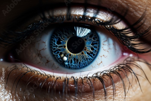 Close-up of eye with new technology, ai display concept, and innovative tech inside