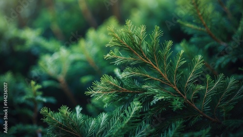 Close-up of fluffy fir tree branch and Western red cedar branch - Latin name - Thuja plicata