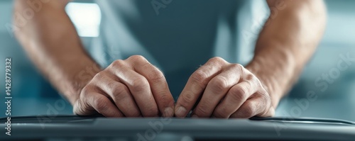 Close-Up of Focused Hands on Table Surface in Professional Setting