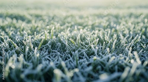 Close-up of football turf with slight frost, early morning