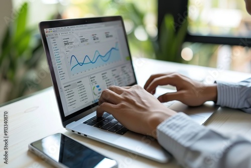 Close-up of freelancer working on laptop, highlighting flexibility and autonomy in remote work