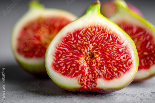Close-up of fresh figs cut in half