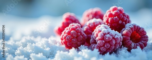 Close-up of fresh frozen raspberries covered in frost with a icy texture, cold, frozen