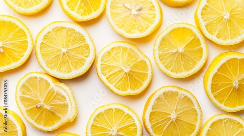 Closeup of fresh lemons on a pristine white background, burst of citrus delight