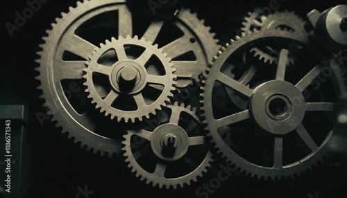 Close-up of gear mechanism with cinematic lighting, shadows adding depth