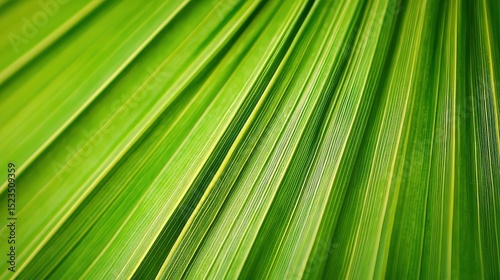 Close-up of giant palm leaf edge highlighting veins against dark background. Vibrant green texture with soft focus for tropical decor, wallpaper, or wellness designs. Natural contrast and organic deta