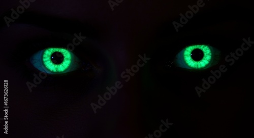Close-up of Glowing Green Eyes in the Dark