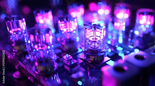 Close-up of Glowing Holographic Qubits in Futuristic Environment