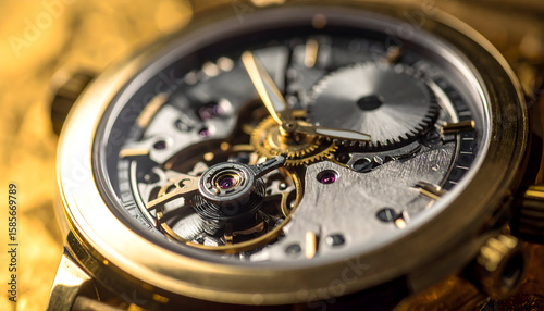 Close-Up of Gold Watch Mechanism with Intricate Gears