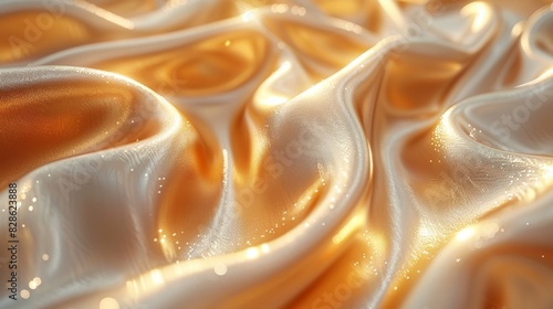 Close-up of golden silk fabric with beautiful shimmery texture and smooth folds, perfect for luxury themes. High quality photo