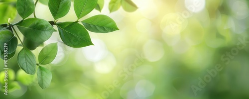 Close-up of green leaves with sunlight filtering through and a bokeh effect in the background, showcasing natural beauty.