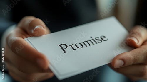 Close-up of Hand Holding a Card with the Word "Promise"