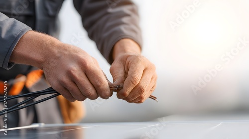 Close-up of hands connecting solar panel wiring