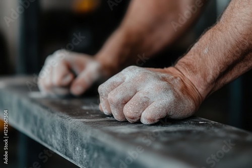 Close-up of hands covered in magnesium before bench press.
