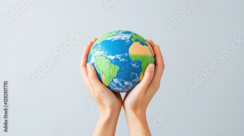 Close-up of hands holding a globe, symbolizing global corporate responsibility and commitment to positive environmental impact Global responsibility, Environmental CSR