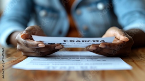 Close-up of hands holding a rejected loan application, highlighting financial difficulties.