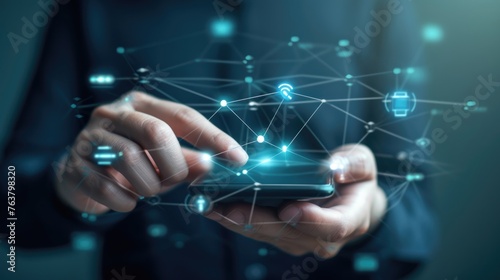 Close-up of hands holding a smartphone, fingers tapping on the screen