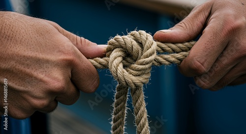 Close-up of Hands Tying a Knot in a Rope