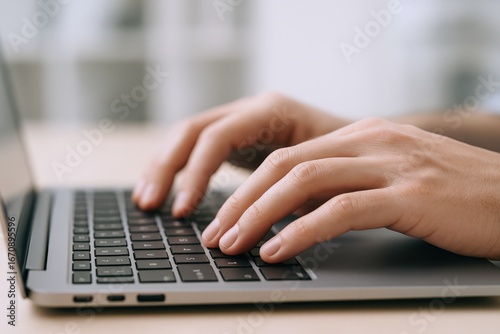 Close-up of Hands Typing on Laptop Keyboard for Remote Work and Communication