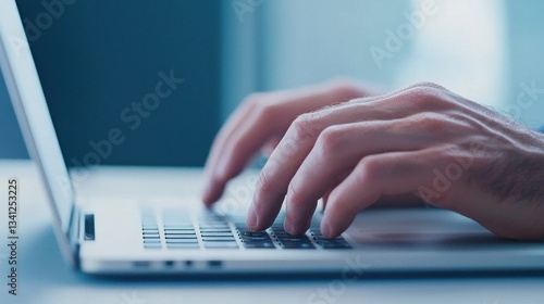 Close-Up of Hands Typing on Laptop Keyboard in Modern Workspace