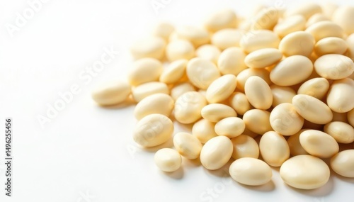 Close-up of heap of white beans against white backdrop, delicious, plant based, food