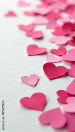 Close-up of heart-shaped confetti on clean white surface, anniversary, Celebration, wedding