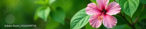 Close-up of Hibiscus cannabinus plant with vibrant green leaves and delicate pink flowers in bloom, eco-friendly, textile