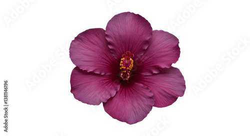 Close-up of Hibiscus Flower Blooming with Crimson Petals on White