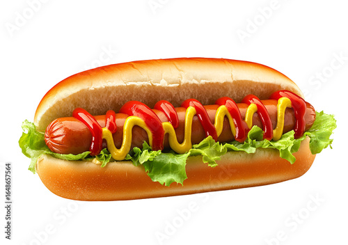 Close-up of hot dogs with toppings, American street food concept, hyper-realistic, isolated on white background