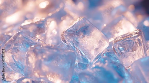 Close-up of ice cubes with soft blue lighting, cooling and refreshment concept