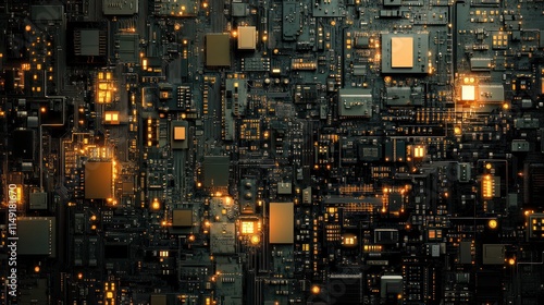 Close-up of illuminated circuit board.