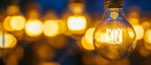 Close-up of illuminated light bulbs with a blurred background creating a warm glow.
