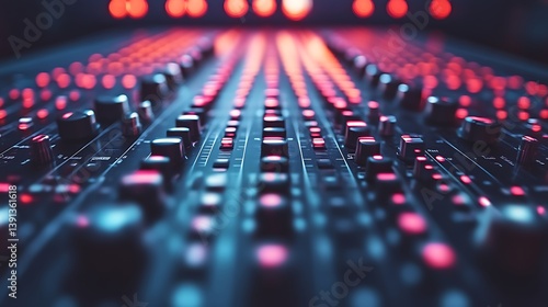Close-up of illuminated sound mixing console.