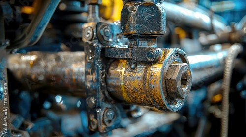 Close-up of Industrial Machine Component: Detailed View of Metal Parts and Engineering Mechanisms