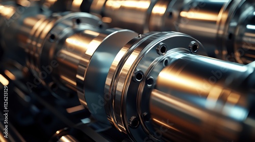 Close-up of Industrial Machinery: Polished Metal Cylinders and Precision Engineering
