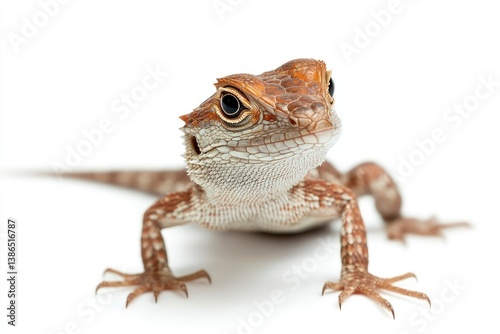 Closeup of Inland Bearded Dragon on White Background Captivating Reptile Portrait