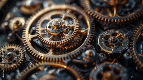 Close-up of intricate clockwork gears in motion, showcasing mechanical art, precision engineering, and detailed craftsmanship.
