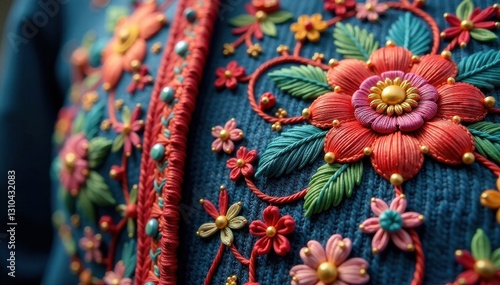 Close-up of intricate embroidery or beading on a unique piece of clothing, texture, beading, clothing craftsmanship