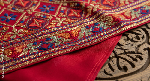 CloseUp of Intricate Gulf Textiles Draped Elegantly