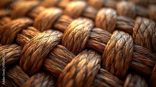 Close-up of intricately woven natural fibers, showcasing the rich texture and golden hues of the braided material, creating a warm and inviting appearance.