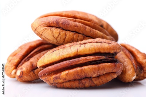 Closeup of Isolated Pecan Nuts on a White Backdrop: A Wholesome Nutty Delight for Food Enthusiasts