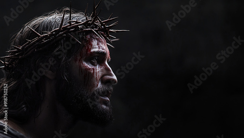 Close-Up of Jesus with Crown of Thorns on Black Background