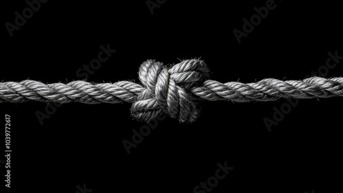 Close-up of knot tied in strong rope against black background