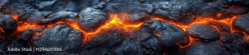 Close-Up of Lava Flow Cracking Through Volcanic Rocks. Generative AI