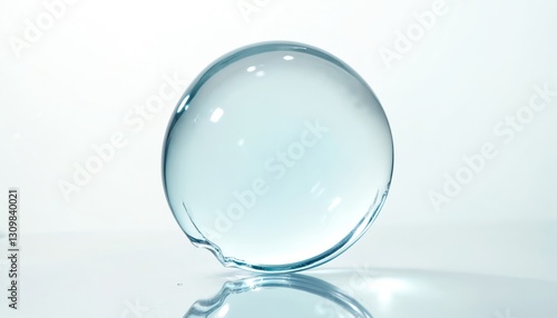 Close-up of light blue transparent gel drop. Round collagen blob texture on white. Serum cosmetic liquid background. Hyaluronic acid skincare product. Cosmetic, cosmetology, aesthetic medicine