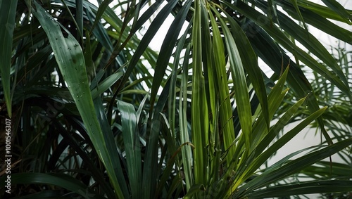Close-up of lush green palm leaves.