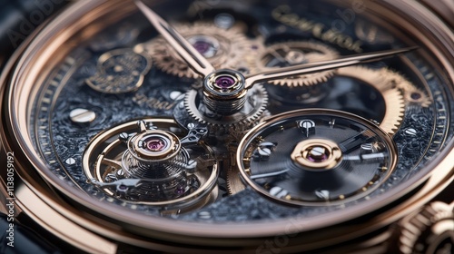 Close-up of luxury mechanical watch showcasing intricate gears, exposed movement, and detailed craftsmanship with polished metal finish