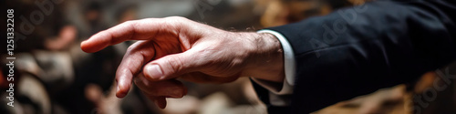 Close-up of Male Hand in Dark Suit Against Blurred Background