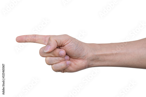 Closeup of male hand showing gesture sign on transparent background - PNG format.