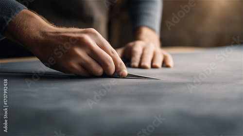Close-up of male hands writing on desk, symbolizing work, planning and productivity, with detailed focus and minimal background including copy space for creative business, education or mockup design.